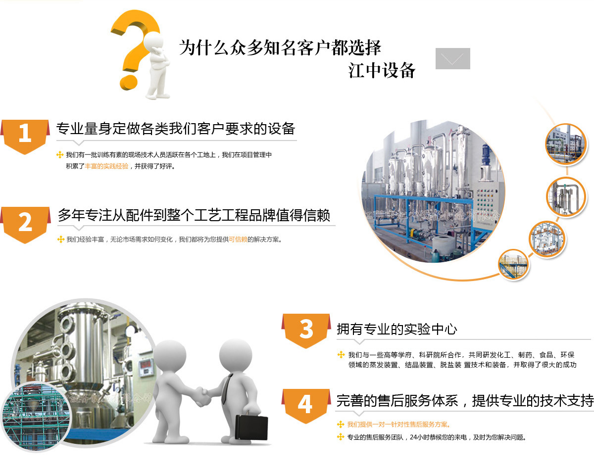 江陰市江中設(shè)備制造有限公司是一家專業(yè)從事蒸發(fā)、濃縮、提取、污水處理等設(shè)備的廠家。廣泛應(yīng)用于制藥、化工、食品、農(nóng)副產(chǎn)品深加 冶金、電子等多個(gè)領(lǐng)域。產(chǎn)品遍及全國(guó)三十余個(gè)省、市、區(qū),并遠(yuǎn)銷歐美及東南亞一些國(guó)家和地區(qū)。公司實(shí)力雄厚,匯聚了一批高層次、高素質(zhì) 的專業(yè)人才,一直致力于產(chǎn)品的開發(fā)、生產(chǎn)和管理,并十分注重科技創(chuàng)新,所生產(chǎn)的設(shè)備受到用戶的青睞。